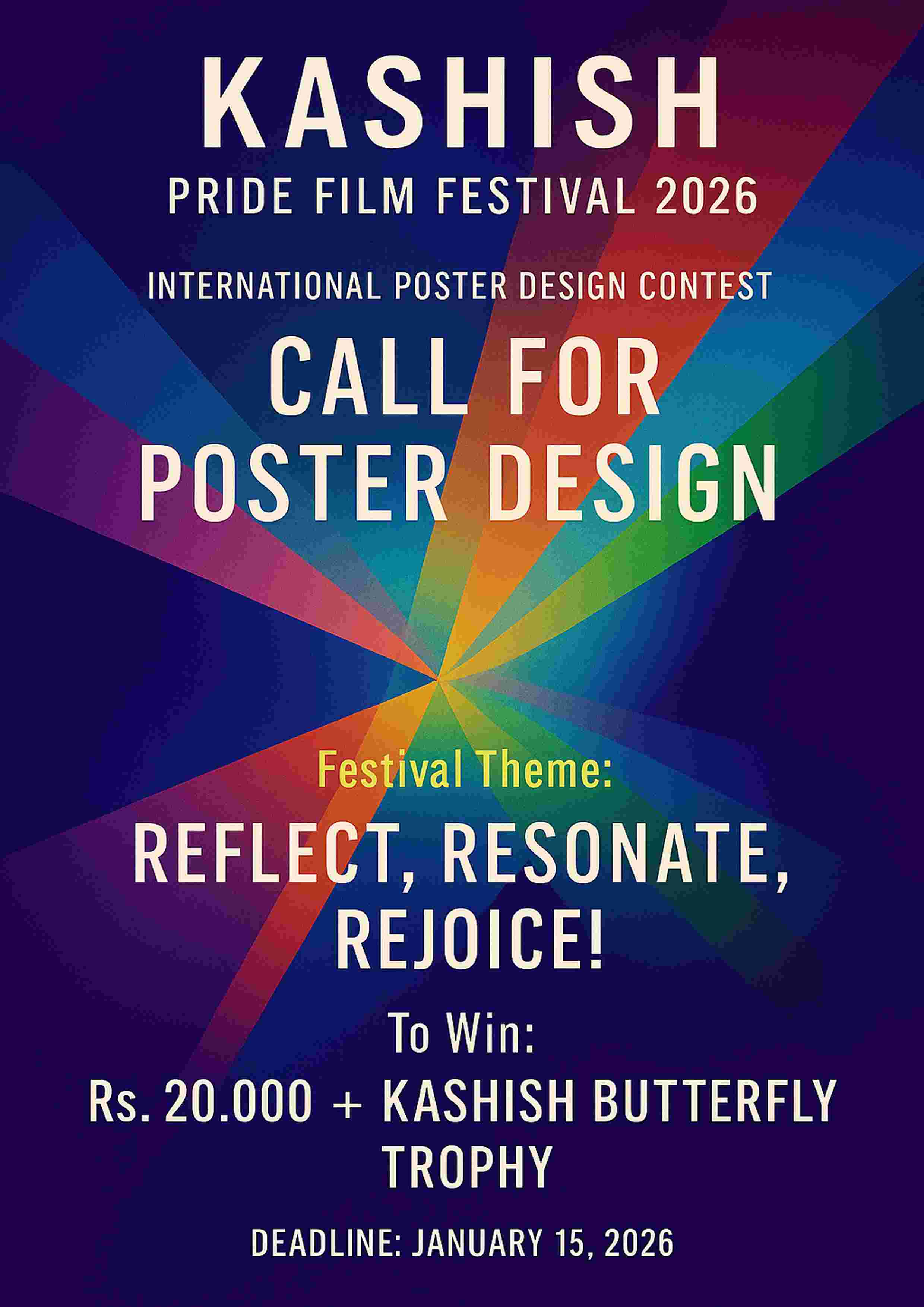 KASHISH 2026 invites artists and designers not only in India, but from across the world to send their designs based on this year’s festival theme “Reflect, Resonate, Rejoice!”, and whichever design the jury find that resonate with the theme, will be announced the winner. The winner will receive Rs.20,000 cash prize and also the coveted KASHISH Butterfly Trophy, as well as international recognition since the design will be reproduced across all formats, including hoardings, catalog, delegate cards, etc.