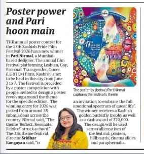The winner for the KASHISH 2026 International Poster Design Contest for the 17th KASHISH Pride Film Festival was revealed today – Pari Nirmal, a Mumbai based designer who works across publication, packaging, branding, and illustration.